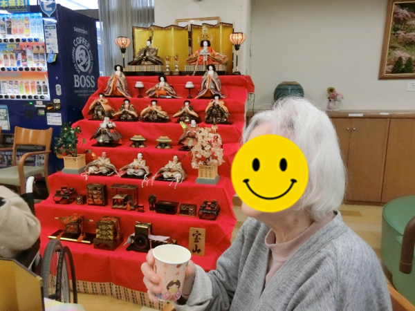 昨年までは感染症対策の為、ロビーへ雛壇を見に行くだけでしたが